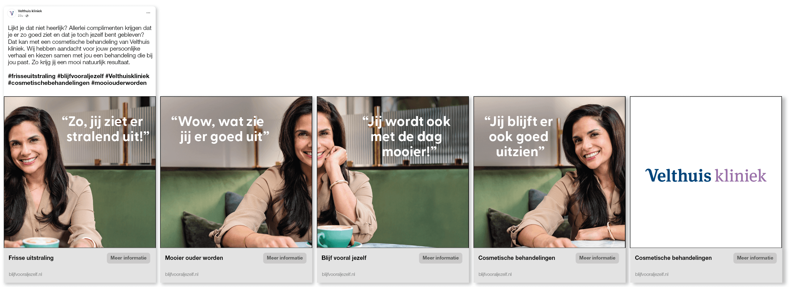 Al meer dan 25 jaar is Velthuis Kliniek een toonaangevende speler in Nederland op het gebied van cosmetische behandelingen en ingrepen. In 2022 gingen NO TOMATO en Velthuis Kliniek samen op zoek naar een positionering die past bij de tijdgeest én bij de vrouw van nu. De kern vonden we in de balans tussen innerlijk en uiterlijk: jezelf weer herkennen én durven uiten. Vanuit dat inzicht ontwikkelden we de waardepropositie en merkcampagne ‘Blijf vooral jezelf’ — een boodschap die authenticiteit viert en Velthuis Kliniek onderscheidt.
