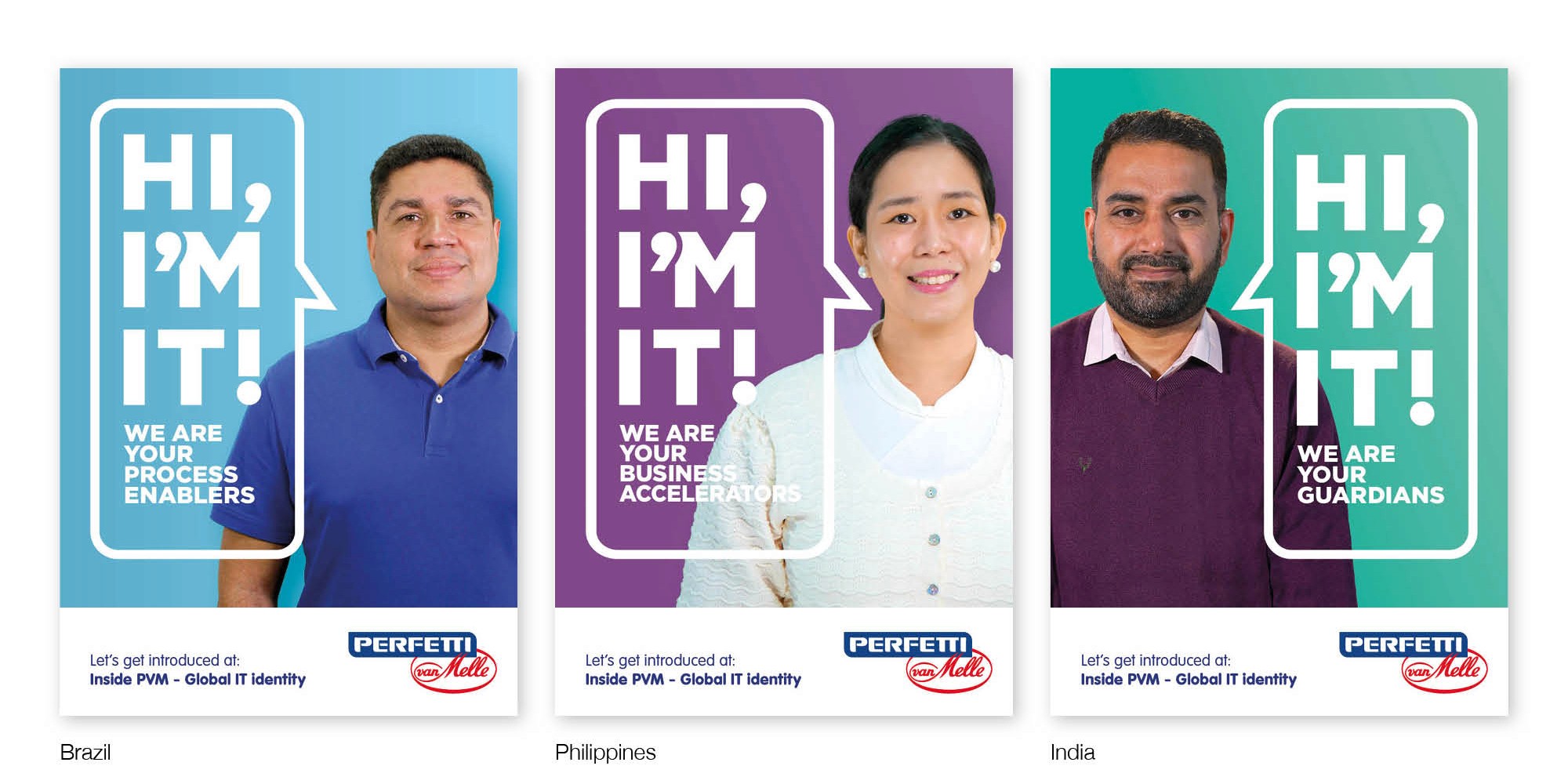 Het begint allemaal met een positieve introductie van het global team met “Hi, I’m IT”. Hiervoor is campagnecontent geproduceerd in vijf landen. Zo maakt iedereen wereldwijd kennis met de collega’s uit onder meer India, Nederland, Spanje, Brazilië en de Filippijnen. Collega's worden geactiveerd de verhalen te delen met onder meer lokale toolkits, achtergronden voor online vergaderingen en merchandise. Nu duidelijk is waar Global IT voor staat als businesspartner binnen Perfetti Van Melle, is het tijd voor het volgende hoofdstuk waarin de afdeling zich verankert binnen de organisatie.